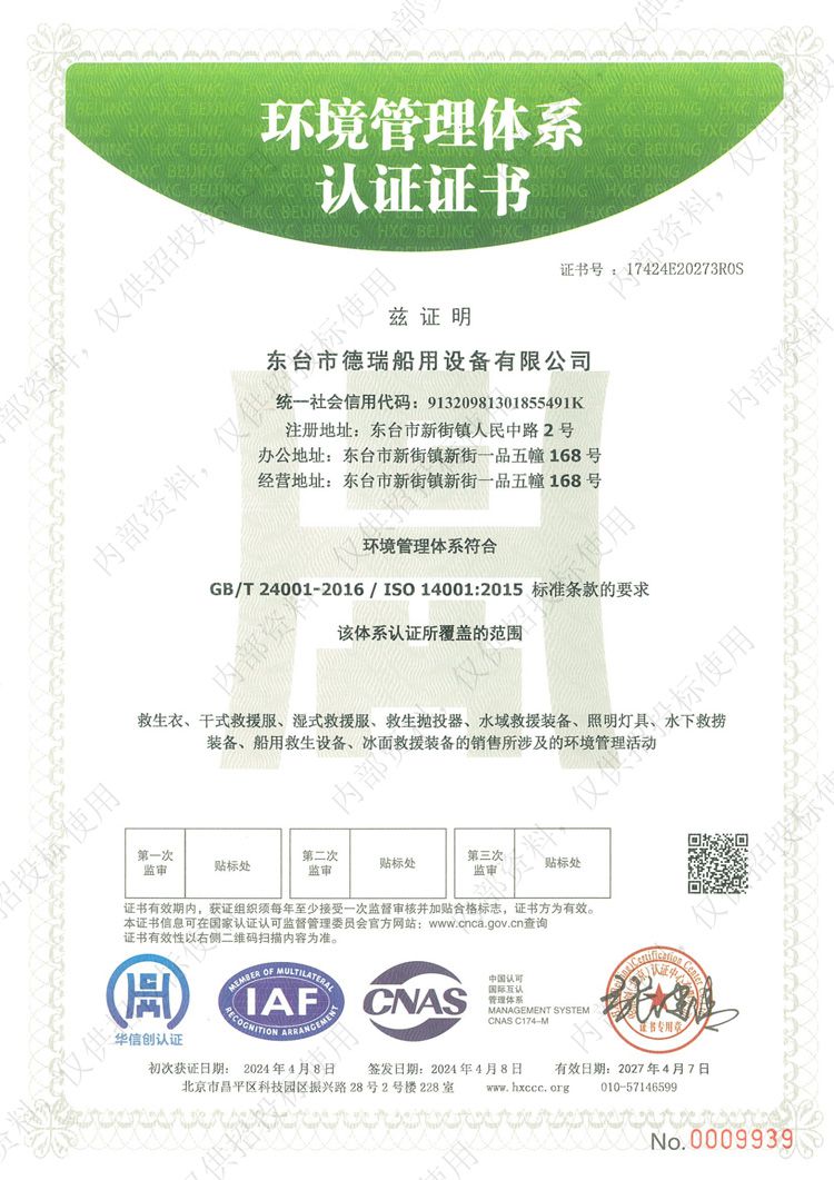 環(huán)境管理體系認證證書