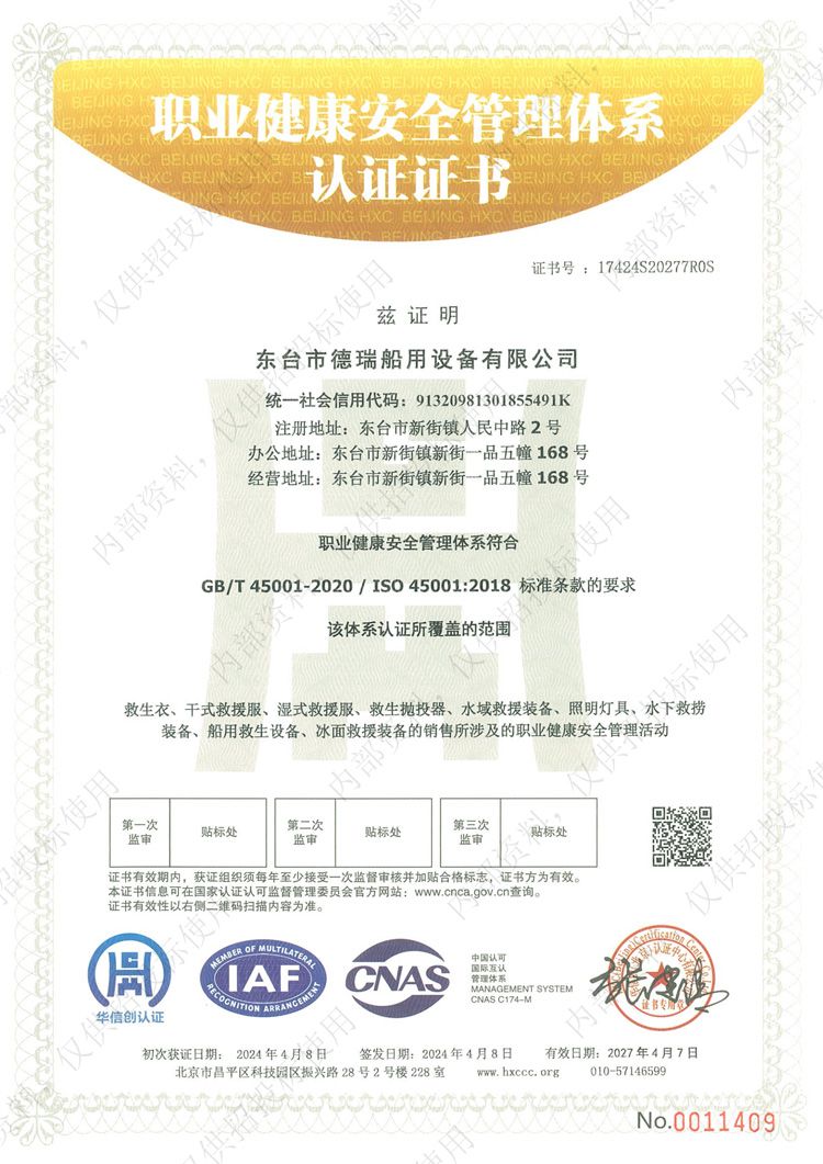 職業(yè)健康安全管理體系認證證書