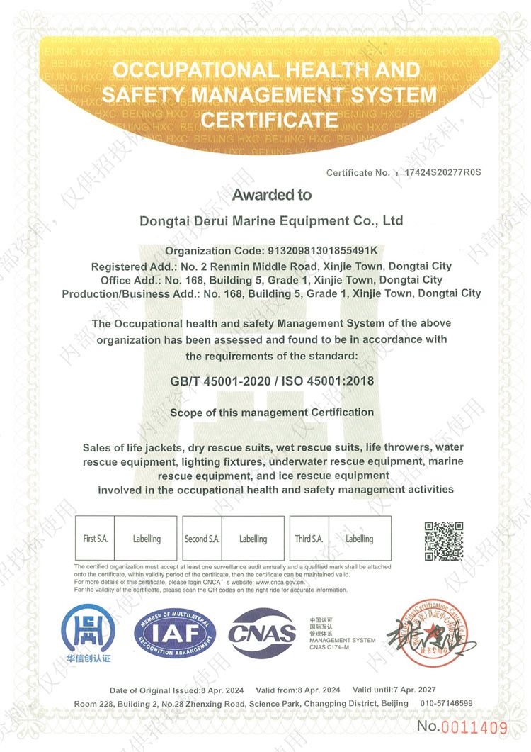 職業(yè)健康安全管理體系認證證書(英文版)